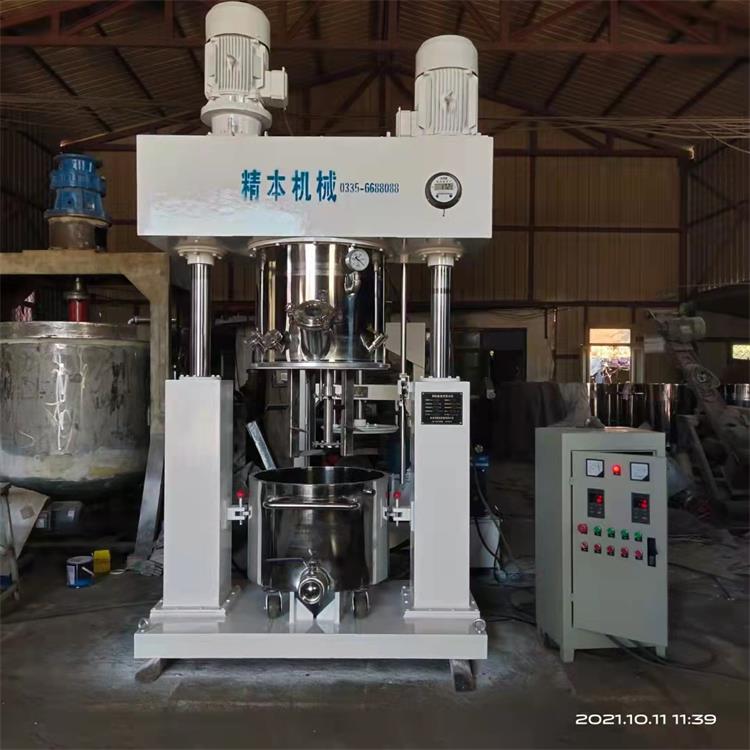雙行星攪拌機(jī)根據(jù)行星運(yùn)動(dòng)軌跡設(shè)計(jì),攪拌結(jié)構(gòu)有低速攪拌器、高速攪拌器、以及相應(yīng)的刮板裝置組合而成。雙行星攪拌機(jī)的雙組低速攪拌器自轉(zhuǎn)的同時(shí)繞著軸心進(jìn)行公轉(zhuǎn),而且低速攪拌器的形式根據(jù)不同的物料粘度和生產(chǎn)工藝選擇不同的攪拌形式,常見(jiàn)的攪拌形式包括槳葉式、麻花式、爪式、框式等結(jié)構(gòu),具備良好的混合、反應(yīng)、捏合、溶解的作用;高速分散器由多層具備極高線(xiàn)速度的鋸齒狀分散盤(pán)組成,它同樣在高速自轉(zhuǎn)的同時(shí)繞著軸心進(jìn)行公轉(zhuǎn),能夠?qū)⒎哿希ㄖ鷦┛焖俚姆稚⒌綕{料里,具備很強(qiáng)的分散作用;刮板裝置根據(jù)客戶(hù)實(shí)際的生產(chǎn)工況選配。