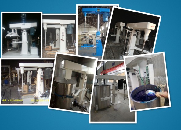 High speed dispersing machine is suitable for mixing, dissolving and dispersing two or more liquid and powder materials. It can be used for production alone, or can be matched with a variety of sand grinder continuous production through the high-speed operation of the dispersing disk, so that the material is circular flow, producing a strong vortex, spiral down to the bottom of the vortex. Strong shear collision and friction occur between particles, which can disperse rapidly, dissolve and mix evenly. By controlling the work of the oil pump to drive the hydraulic press frame lifting, hydraulic press frame to drive the whole transmission mechanism and working group lifting.